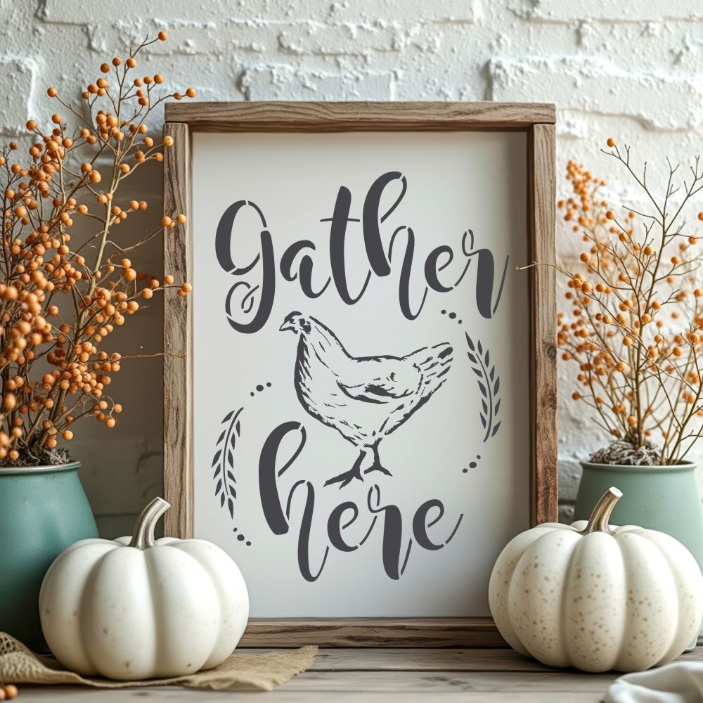 This Gather Here design is perfect for just about anything you can dream up in your chic farmhouse. It can be stenciled onto walls, canvas, wood, pillows, furniture and any other textiles for a quick home decor DIY project. Check out our other Antique Farmhouse designs to carry the farmhouse vibe throughout your home!