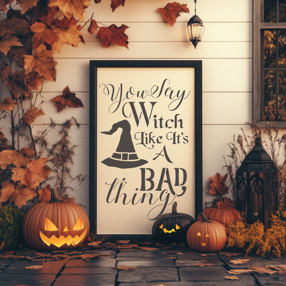 You Say Witch Halloween Craft stencil is perfect for your next Halloween DIY Craft Project. Stencil on virtually any surface including canvases, burlap covered items, wood signs and decorative foam pumpkins. You can also use this for pumpkin carving!